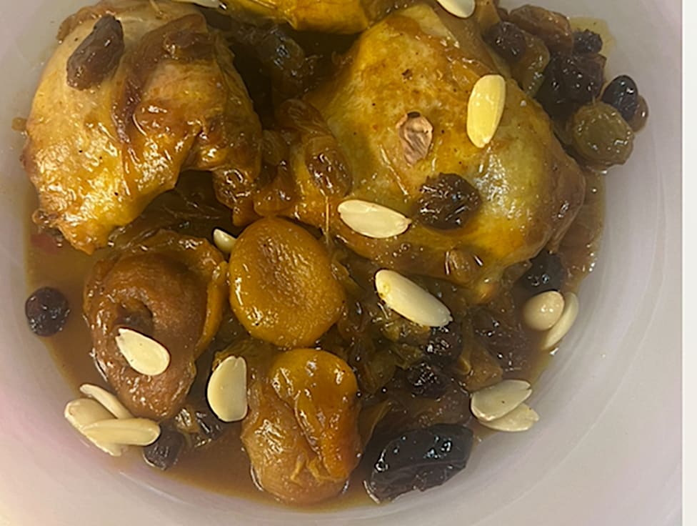 כרעי עוף עם מבחר פירות יבשים ובצל מקורמל