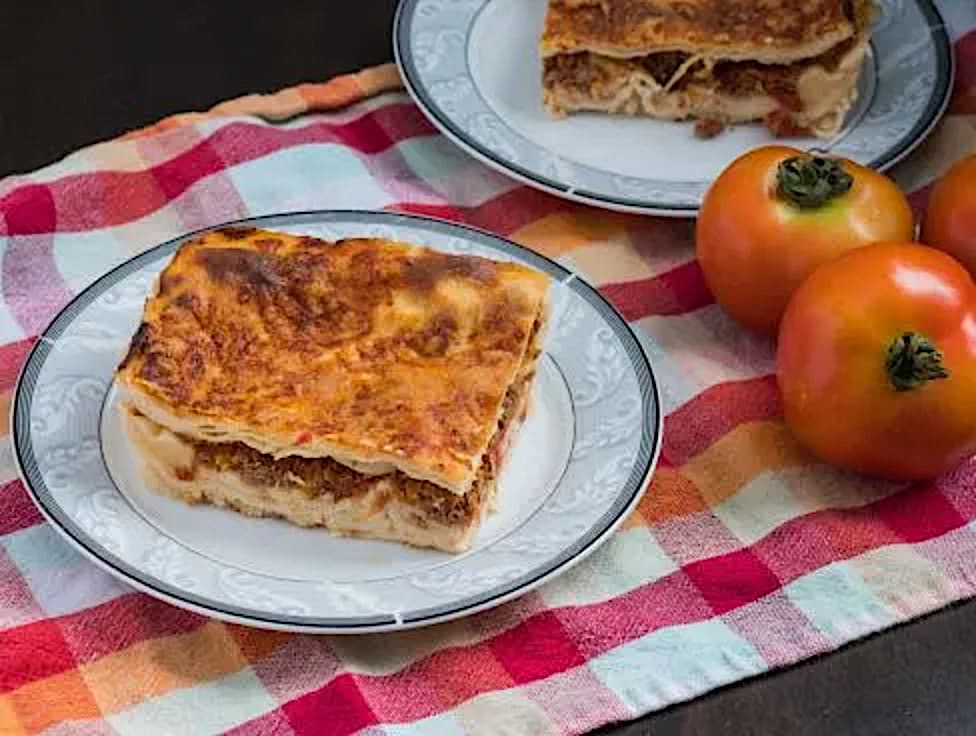 לזניה עבודת יד עם רוטב בולונז, בשמל וגבינות (תבנית ל-4 סועדים)