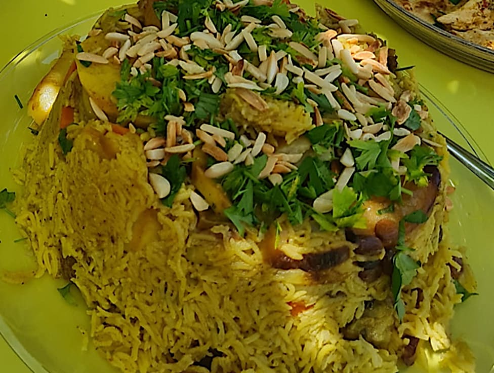 תבשיל נפלא מהמטבח הערבי - שכבות של אורז מתובל, ירקות צלויים, בשר בקר רך ושוקי עוף.