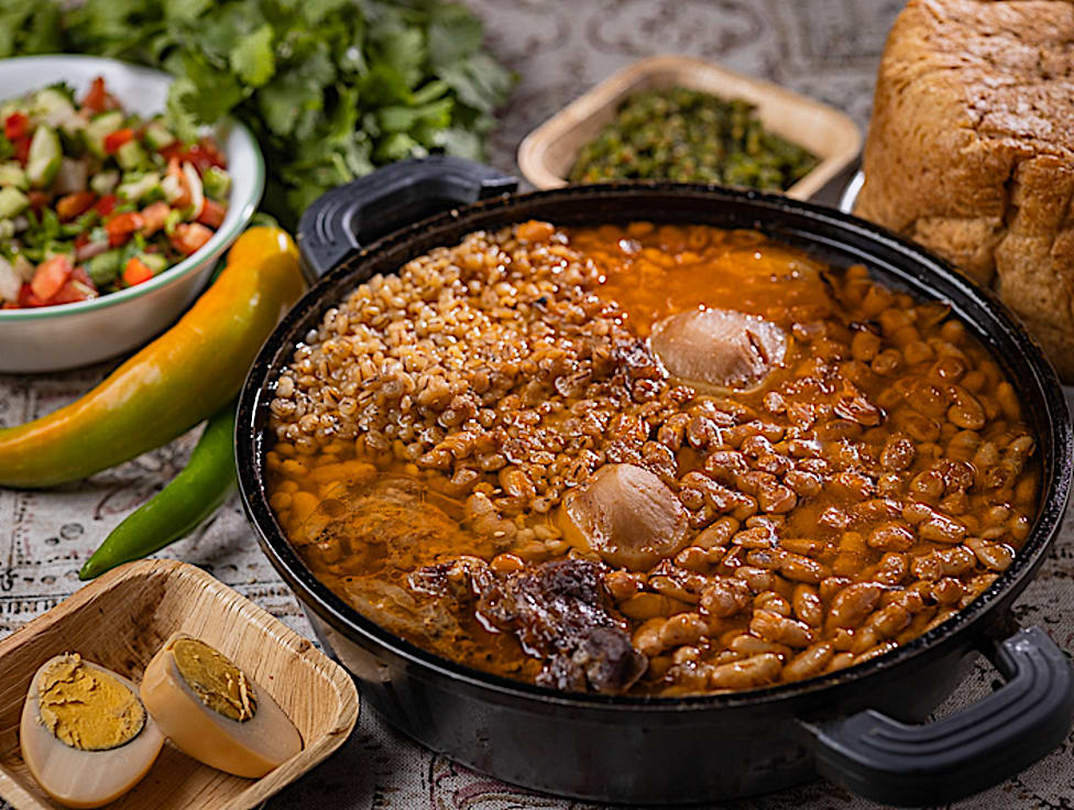 חמין של שבת עטוף באהבה של אמא. שעועית, גריסי פנינה ותפוחי אדמה ביצים בבישול ארוך על אש קטנה.