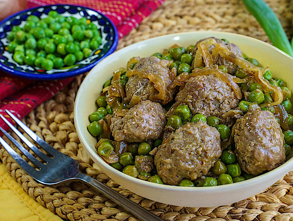 קציצות בקר רכות ועסיסיות שמתבשלות יחד עם בצל והמון אפונה עדינה בתוך רוטב סויה עשיר ומתקתק. הקסם של המנה הזו נמצא בשילוב שבין האפונה העדינה, שמוסיפה מרקם כיפי, לבין רוטב שמאחד סויה מתקתק. השילוב הזה יוצר זיגוג עשיר וטעם עמוק שנספג בצורה מושלמת בקציצות. זו מנה ביתית להפליא ואהובה מאוד על ילדים (וגם על הורים). פשוט להגיש על אורז לבן שסופג את כל הרוטב וליהנות.