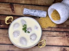 קטאייף - קמח, סולת, אבקת אפיה, חלב, מי זהר, מחלב, סוכר, גבינה, אגוזי מלך.