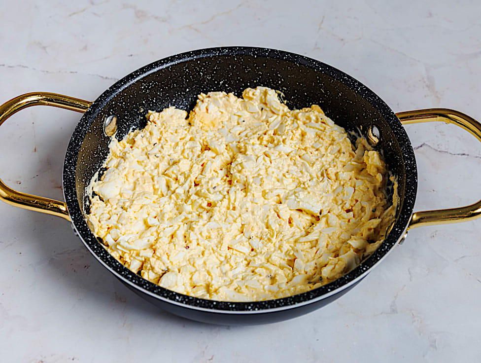 סלט קרמי המבוסס על ביצים קשות, מיונז ותיבול עדין . סלט ביתי מזין ומשביע מתאים כממרח לכריכים או כתוספת לארוחה** לא מכיל גלוטן עד רמת התבלינים, כלים נקיים ואריזה נפרדת (הסביבה אינה סטרילית מגלוטן)