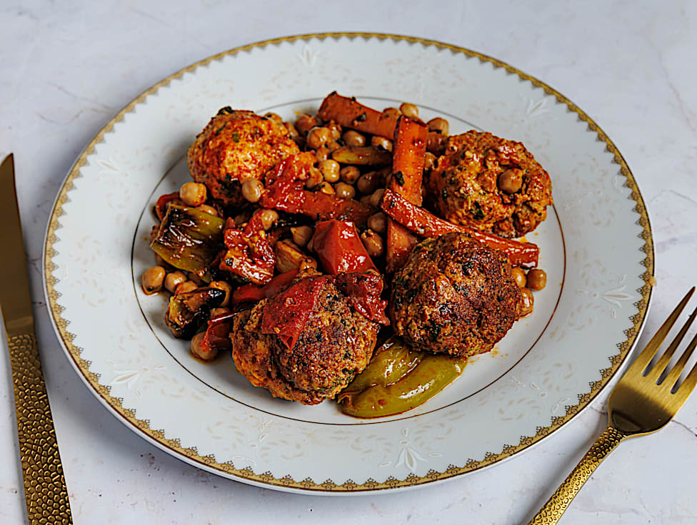 תערובת דג סלמון ודניס טחונים בתיבול ביתי עם עשבי תיבול במרקם רך ועסיסי מוגשות עם רוטב עגבניות וגרגירי חומוס פיקנטי עשיר