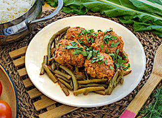 גרסה טבעוני- תבשיל ביתי של שעועית לבנה, חומוס ועלי מנגולד רכים, מבושלים עם בצל ותיבול עדין