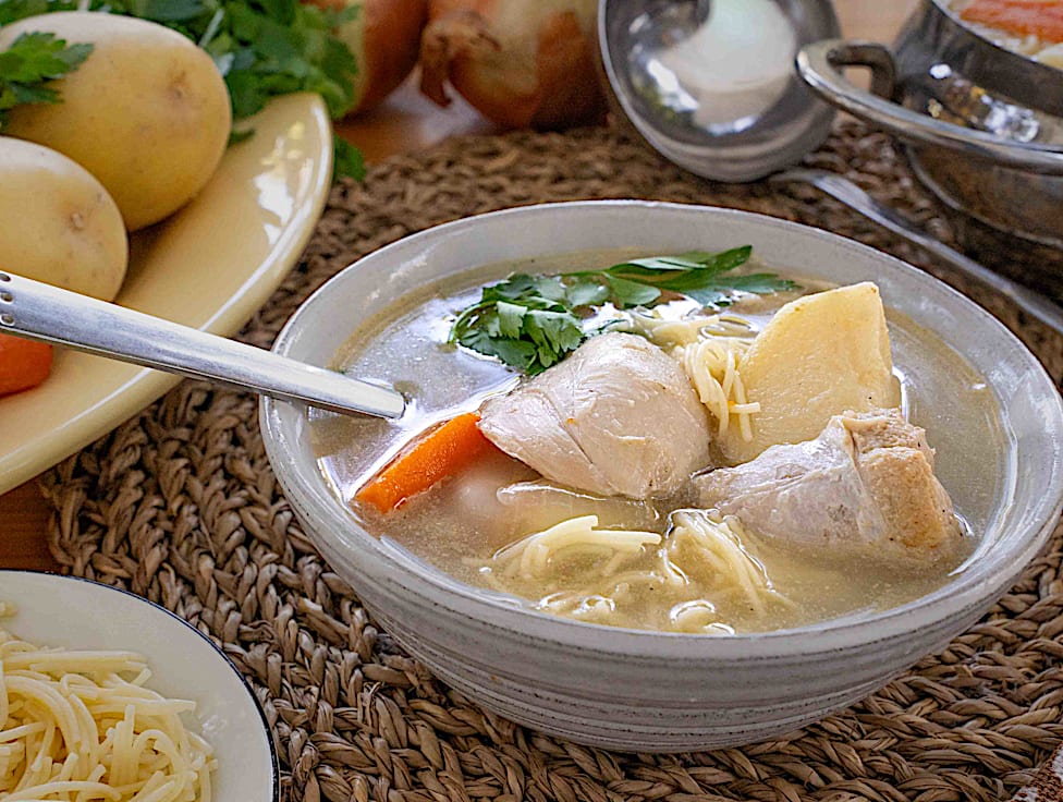 מרק עוף וירקות שורש, צלול וריחני. הדרך המושלמת להתחמם!
