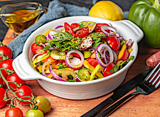 ניתן לבקש את הסלט טבעוני ללא דבש עם סוכר במקם ברוטב
