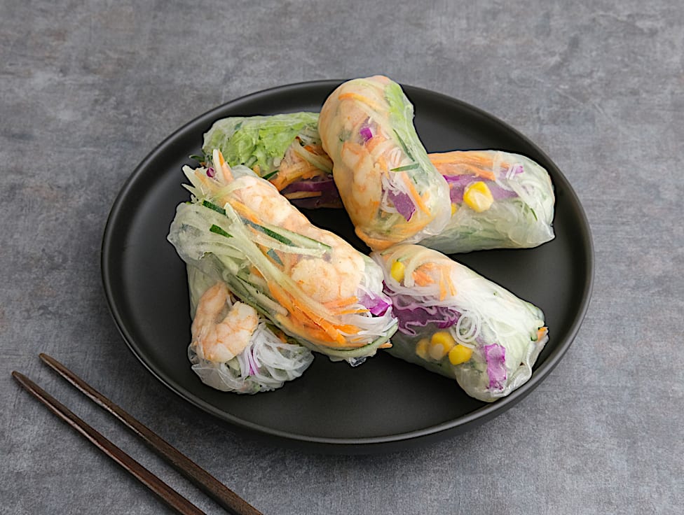נמס עטופים בעדינות בעלי אורז שקופים, שמגלים לב נדיב של עוף רך, ירקות פריכים, עשבי תיבול טריים וגם אורז ריחני שמוסיף נגיעה של רכות ושובע. כל ביס הוא איזון מושלם בין רעננות, טעם עשיר וקלילות.