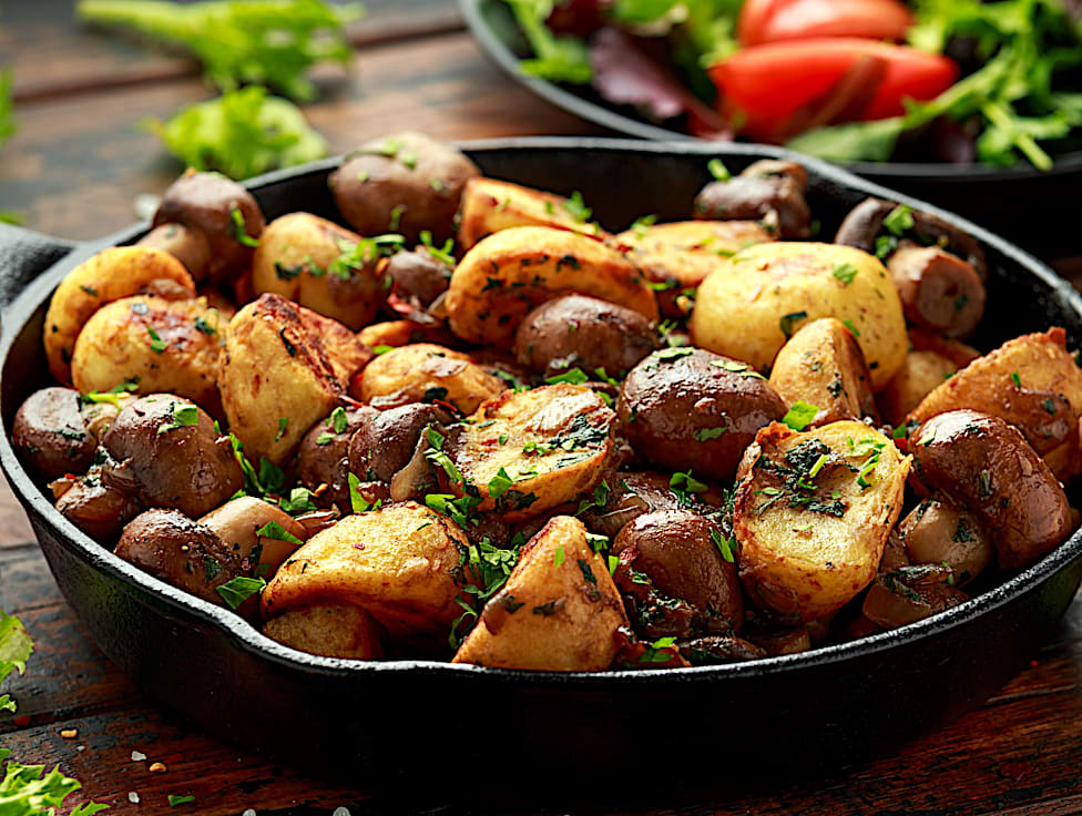 מנה צבעונית וריחנית, שבה המתיקות הקרמלית העדינה של תפוחים נפגשת עם הרכות של תפוחי אדמה זהובים ופריכים, וכל זה מתובל בטעם היער העמוק של פטריות טריות. כל ביס הוא איזון מושלם בין מתוק למלוח, בין קריספי לנימוח.
