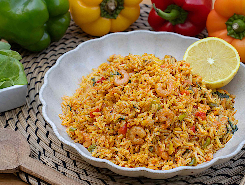 תבשיל בסיר אחד של אורז, פלפלים בצבעים, עלי תרד, בצל, שום ותבלינים עם שרימפס או קוביות טופו. ניתן לבקש חריף.