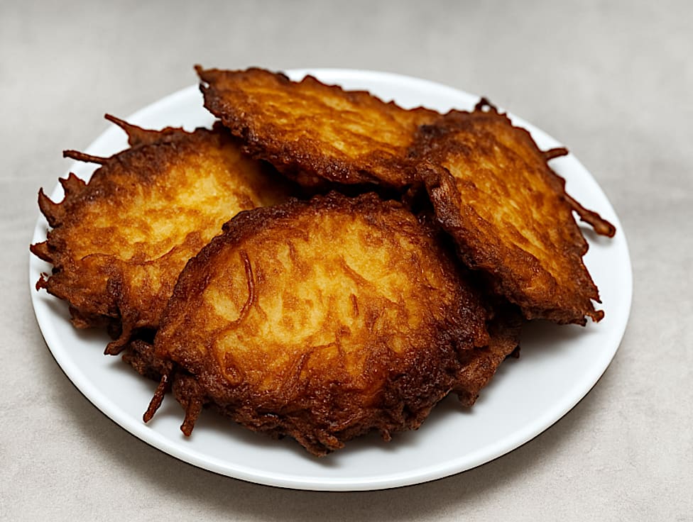 לביבות תפוחי אדמה מטוגנות ללא גלוטן (לטקעס)** לא מכיל גלוטן עד רמת התבלינים, כלים נקיים ואריזה נפרדת (הסביבה אינה סטרילית מגלוטן)