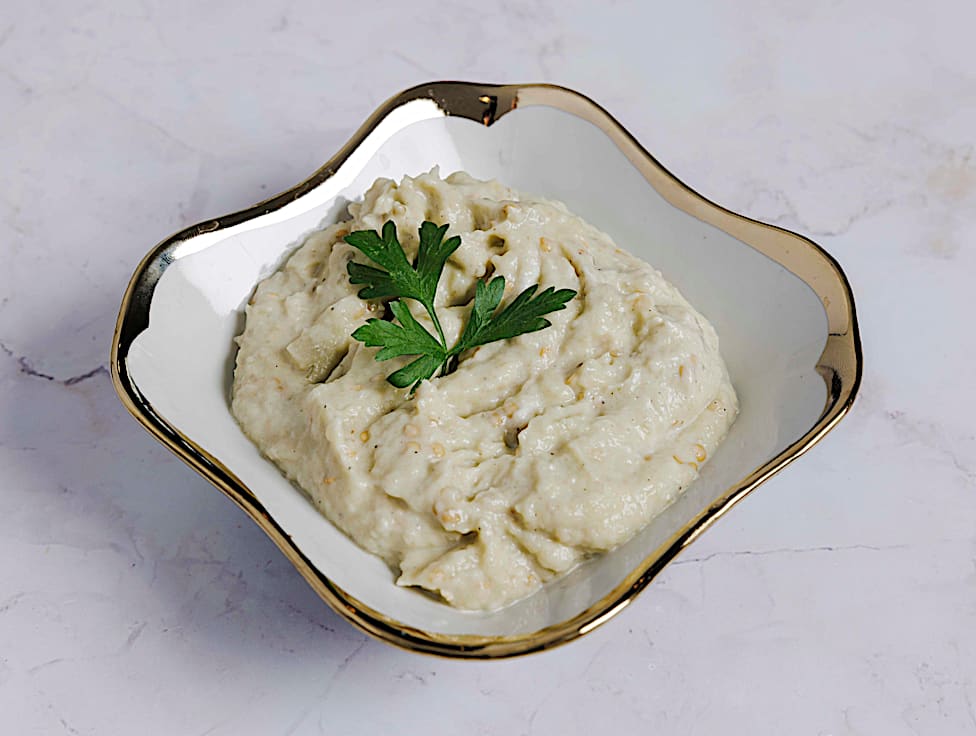 סלט חצילים בסגנון הונגרי עם בצל ומיונז במרקם עדין** לא מכיל גלוטן עד רמת התבלינים, כלים נקיים ואריזה נפרדת (הסביבה אינה סטרילית מגלוטן)