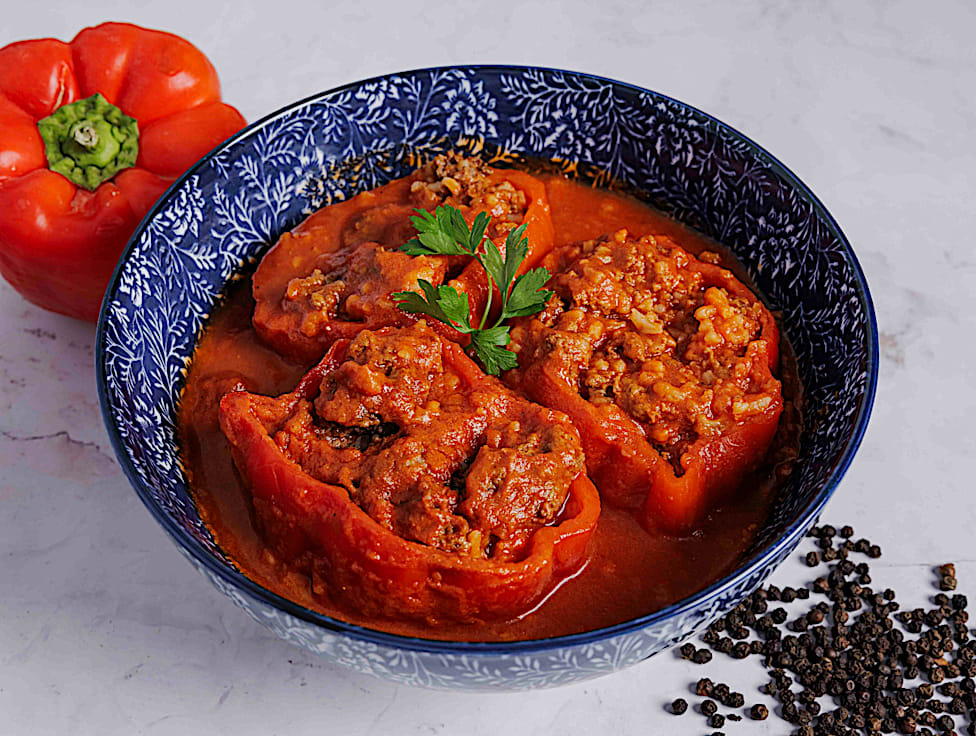 פלפלים ממולאים אורז וירקות ברוטב עגבניות טעים