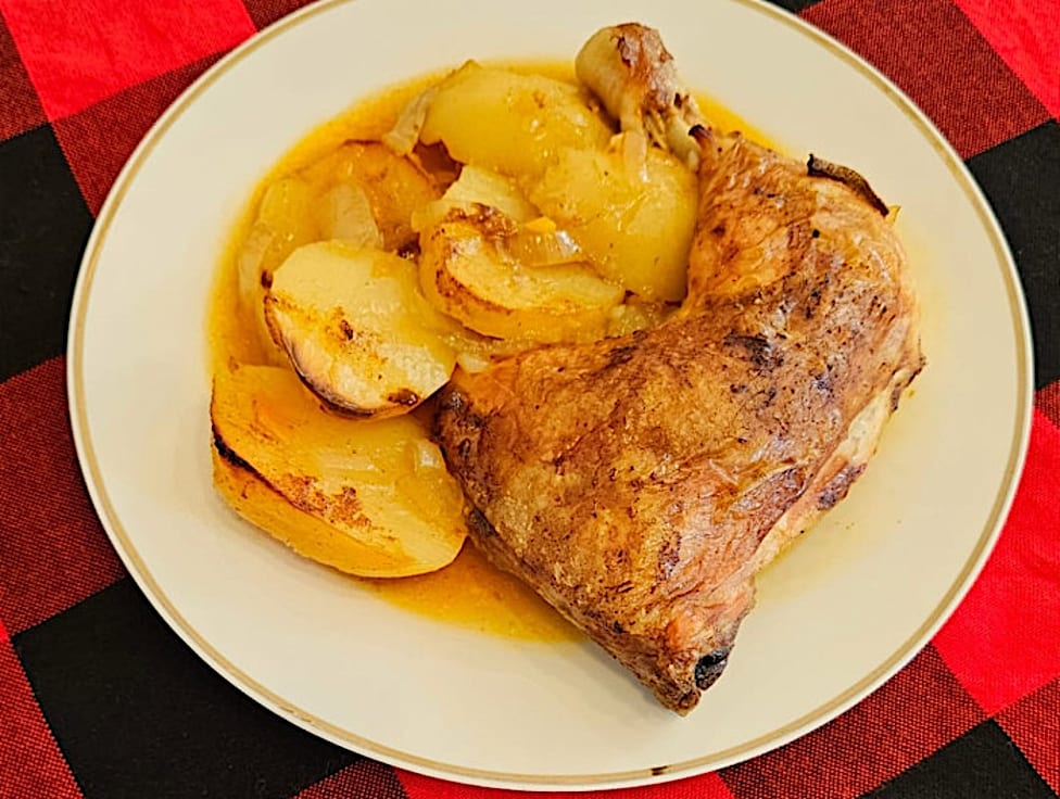 כרעי עוף עסיסיים, מתובלים בתערובת תבלינים ביתית, נאפים יחד עם תפוחי אדמה פריכים ורכים בתנור עד הזהבה מושלמת. כל ביס מלא בטעמים – ארוחה חמה ומנחמת, מוכנה להגיש ישר מהתנור.