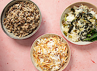 בורגול, עדשים שחורות, בצל, מלח, שמן