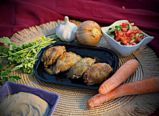 כרעי עוף נימוחים שמתבשלים עם אפונה ירוקה, ברוטב עגבניות עשיר. הטעמים מתמזגים לתבשיל עמוק, רך ומשביע. מומלץ להזמין עם אורז** לא מכיל גלוטן עד רמת התבלינים, כלים נקיים ואריזה נפרדת (הסביבה אינה סטרילית מגלוטן)