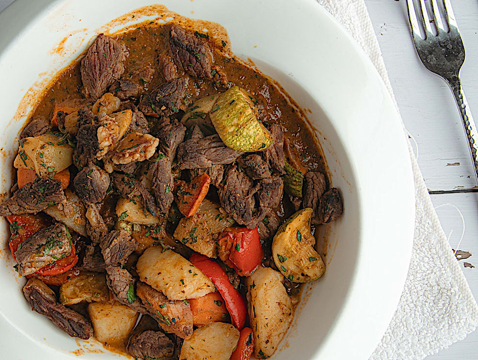 מנה ערבית קלאסית מגיעה עם ירקות עם בשר.