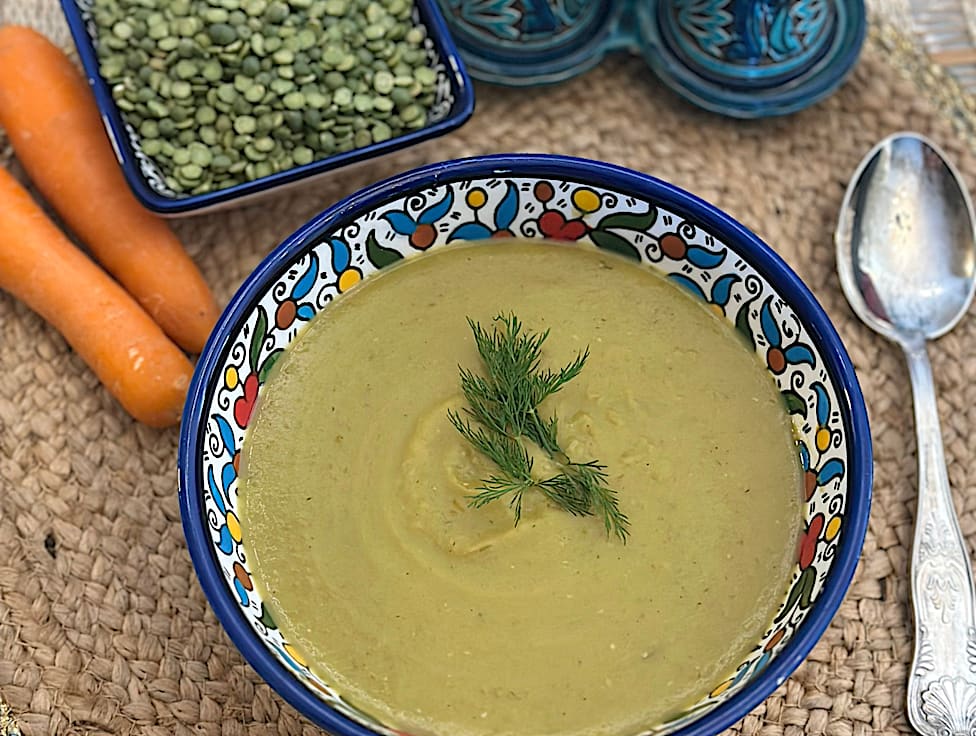 מרק אפונה קרמי ועשיר עם ירקות ותבלינים,