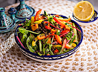 שילוב מרענן של ירקות טריים, פריכים וצבעוניים, מלפפון, עגבנייה, בצל סגול, גמבה בצבעים, חסה ונענע, מתובל בשמן זית, לימון וקמצוץ מלח. מנה קלילה ומלאת טעם שמביאה את הטריות של הגינה ישר לצלחת!
