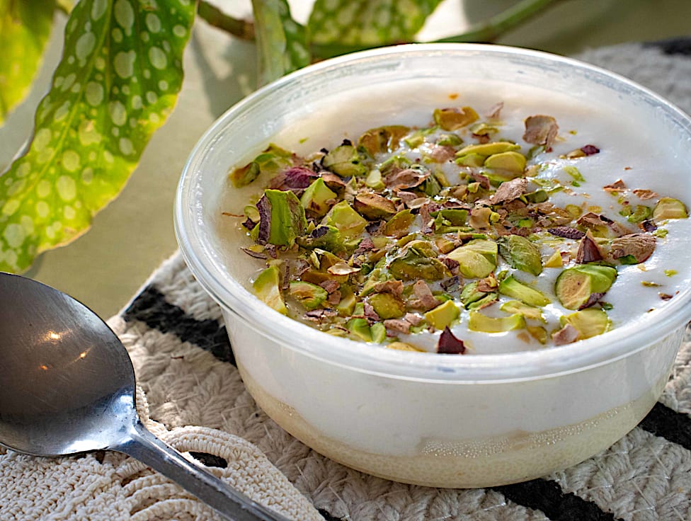 חלב, שמנת, סוכר,חמאה, סולת, אינסטנט פודינג, פיסטוק, גרניום לימוני.