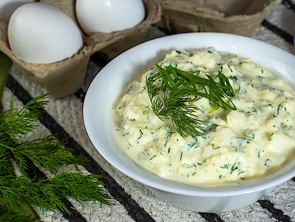 ביצים, מיונז, יוגורט, חרדל, שמיר, בצל ירוק, מלח