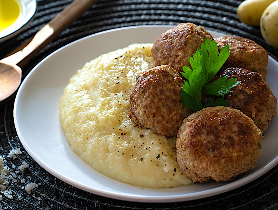 5 קציצות אפויות / ברוטב. ניתן להזמין עם חצי ליטר פירה חלבי