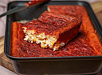 לזניה חלבית קלאסית - דפי לזניה, רוטב בשמל, גבינות ורוטב עגבניות קטיפתי