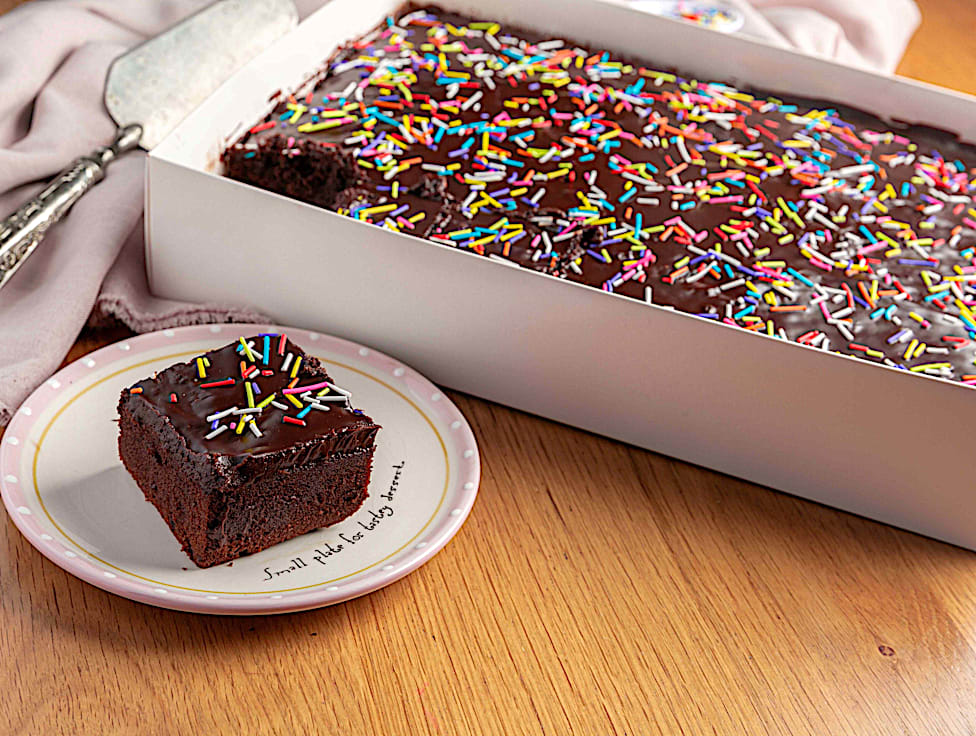 העוגה המושלמת לגן או לכיתה - עוגת שוקולד עסיסית בגודל 25*35, עם ציפוי שוקולד וסוכריות.
