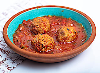 כדורי כמו בשר ברוטב עגבניות - טופו, חלבון סויה, עגבניות, בצל