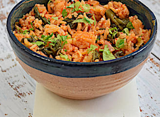 בורגול / אורז, עדשים שחורות, בצל, שמן זית, מלח, פלפל.