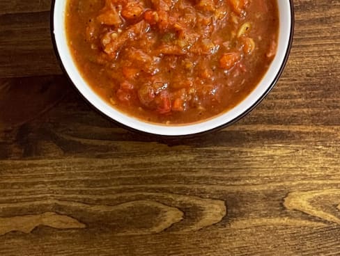 עגבניות ופלפלים שבושלו שעות ארוכות לקבלת איחוד טעמים מושלם.