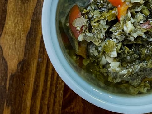 פטרוזיליה, שום, חומץ, שמן, מלח, פלפל, גמבה.