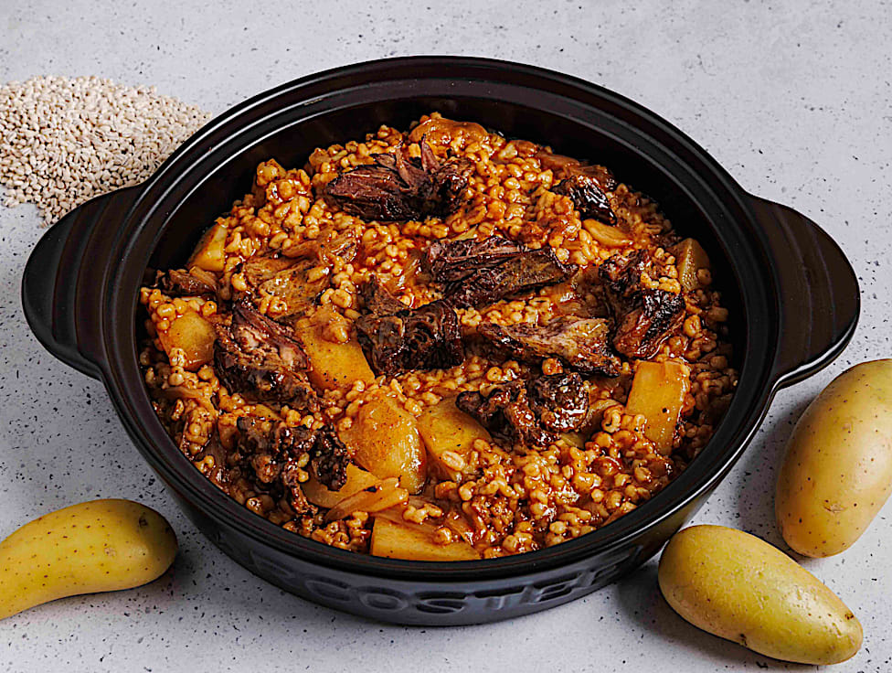 קדירת בשר בקר צוואר עם בצל ,תפוחי אדמה ,שום וגריסים פנינה