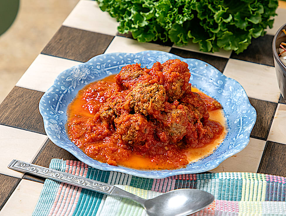 קציצות בשר בקר קטנות ברוטב עגבניות. הקציצות קטנטנות כמו שילדים אוהבים.