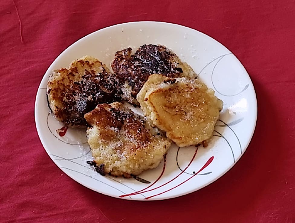 תערובת גבינה לבנה רכה, ביצים וקמח, מטוגנות קלות עד לקבלת לביבה אוורירית וזהובה