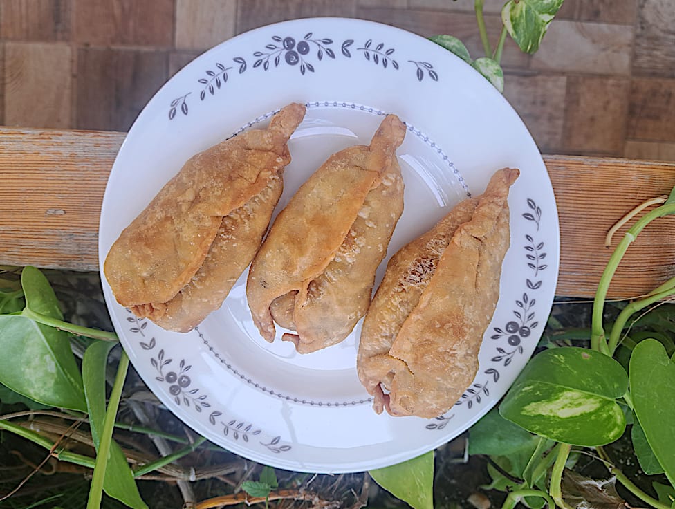סהרון בצק שטוח ומטוגן, קראנצ'י טעים וממכר במילוי עוף, תפו"א , בצל ותיבול הודי