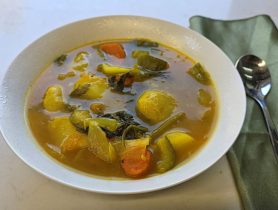 מרק- תפו"א, גזר, דלעת, סלרי, בצל, קישוא, כורכום, מלח.