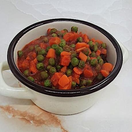 אפונה גינה, שעועית וקוביות גזר ברוטב עגבניות(פומודורו)