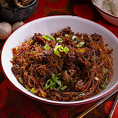 מאי יי שאנג שו - אטריות זכוכית עם טופו קצוץ ברוטב שעועית שחורה (ססמג'אנג) ב- 80% הנחה - עכשיו במבצע!