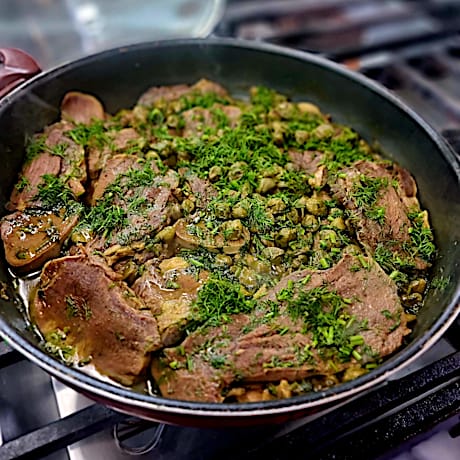 תכולת מנה250גר' עגל ברוטב עם פטריות